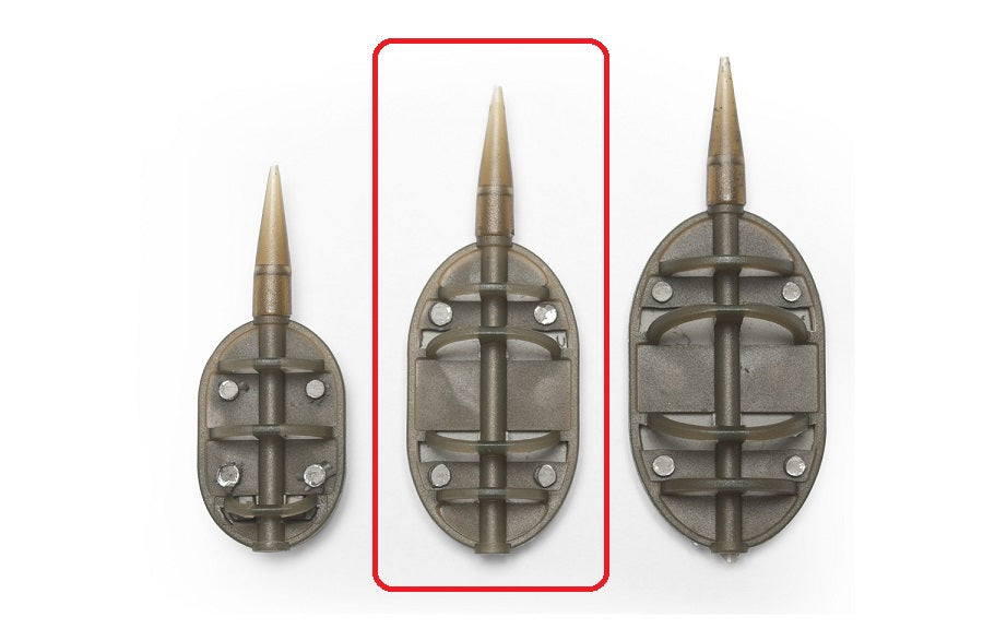 The flat-bottomed design makes them ideal for all situations, including casting tight to the sloping banks of an island. The recess in the front of the feeder accepts a size ten swivel or a Preston Ring Swivel, which will provide just enough tension to make a semi-fixed rig. Alternatively they can be used with Korum Quick change Beads to make a completely free-running rig.